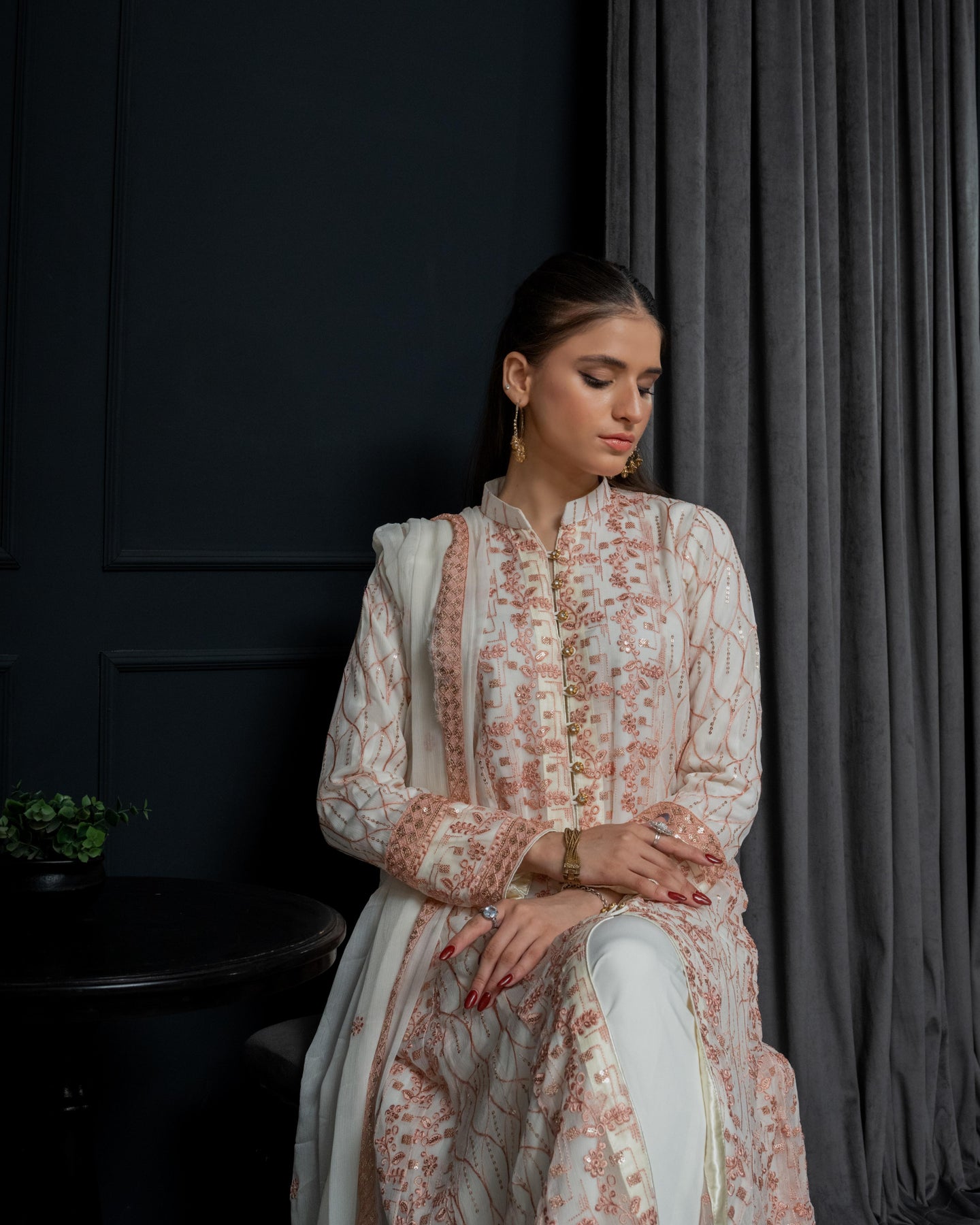 Itroducing our Premium “MUSKAN”, a perfect blend of traditional elegance and modern style. DesInigned to enhance your grace on any occasion, this attire embodies the richness of Eastern wear. Elevate your wardrobe with our traditional Muskan, which tells a story of elegance, tradition, and artistry. Celebrate the beauty of Eastern fashion with our timeless collection