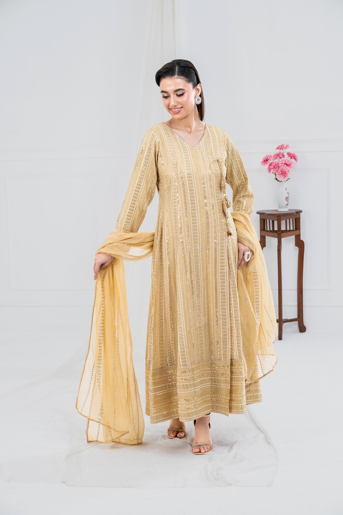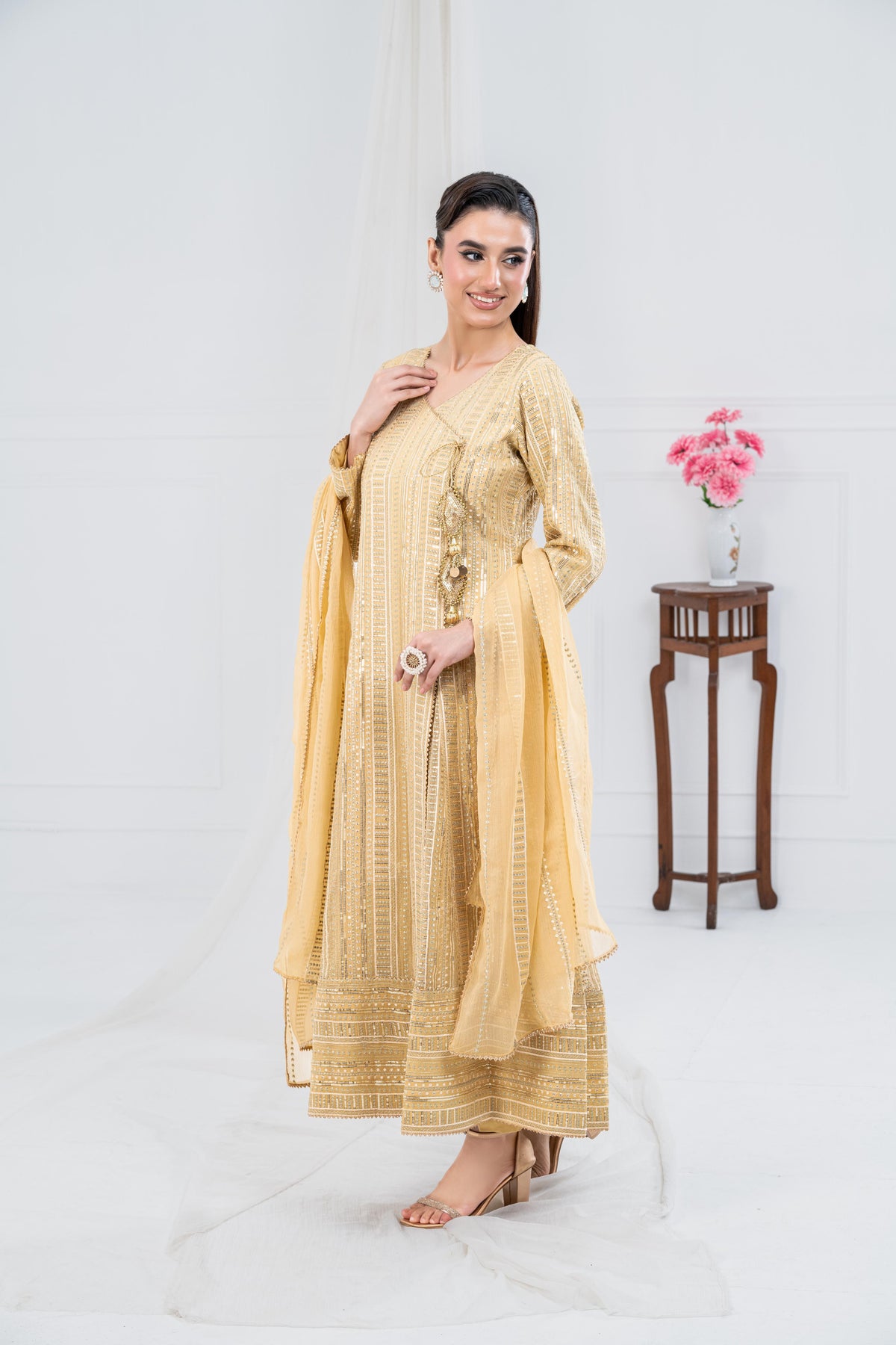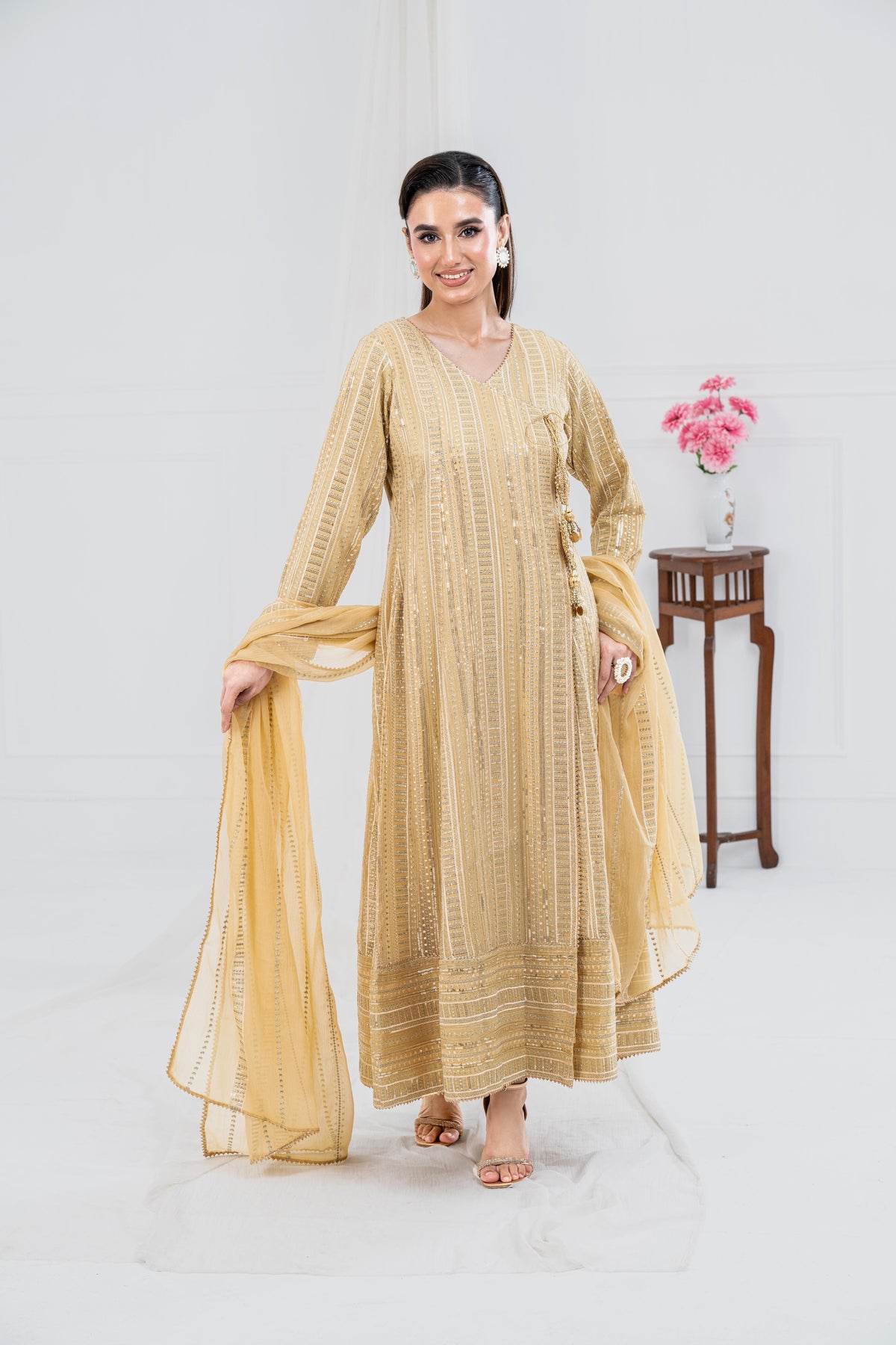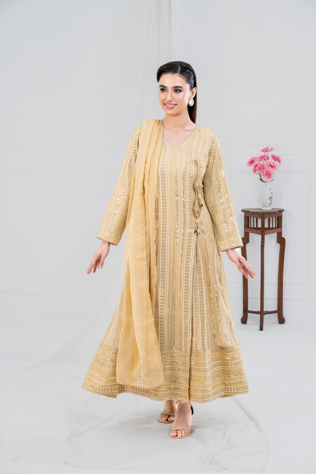 Itroducing our Premium “SHEHZADI”, a perfect blend of traditional elegance and modern style. DesInigned to enhance your grace on any occasion, this attire embodies the richness of Eastern wear. Elevate your wardrobe with our traditional Shehzadi, which tells a story of elegance, tradition, and artistry. Celebrate the beauty of Eastern fashion with our timeless collection
